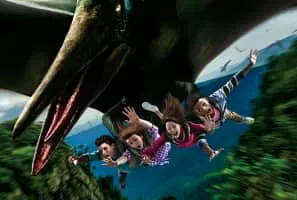 The Flying Dinosaur is a steel flying roller coaster at Universal Studios Japan. Designed by Swiss firm Bolliger & Mabillard, Flying Dinosaur restrains riders in the prone position. The new attraction opened on March 18, 2016, surpassing Tatsu as the world's longest flying roller coaster.