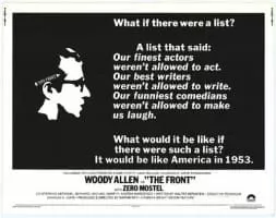 In the 1950s, restaurant cashier Howard Prince (Woody Allen) is apathetic toward the politics around him. When a blacklisted screenwriter (Michael Murphy) asks Howard to sell a script under his own name, Howard sees an opportunity to make a profit and becomes a "front" for several blacklisted writers. But after he witnesses the social destruction of a comedian (Zero Mostel), Howard sees the corruption of McCarthyism and decides to do something to make a difference. …