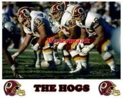 The Hogs were a nickname given to the offensive line of the Washington Redskins of the National Football League during the 1980s and early 1990s. Renowned for their ability to control the line of scrimmage, the Hogs helped the Redskins win three Super Bowl championships under head coach Joe Gibbs.