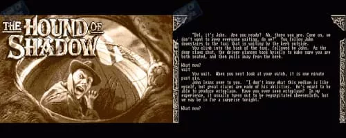 The Hound of Shadow is an interactive fiction game created by British studio Eldritch Games and published by Electronic Arts in 1989. It was released for the Amiga, Atari ST, and MS-DOS. Loosely based on the works of H. P.