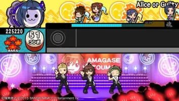 The Idolmaster Must Songs Presented by Taiko no Tatsujin is a PlayStation Vita rhythm game, released by Bandai Namco Entertainment on December 10, 2015. Though a title of The Idolmaster series, its game system is drawn from Taiko no Tatsujin.