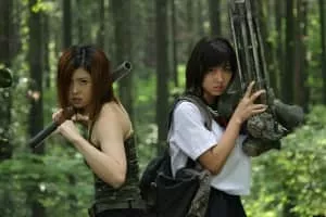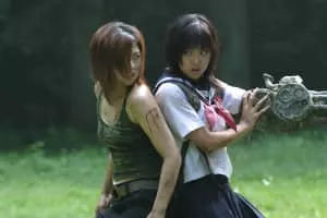 Ami loses her brother to yakuza bullies then her arm when she seeks retribution. Two mechanics take pity on her and create a new limb out of a machine gun allowing her and a chain-saw wielding woman to seek out their revenge.