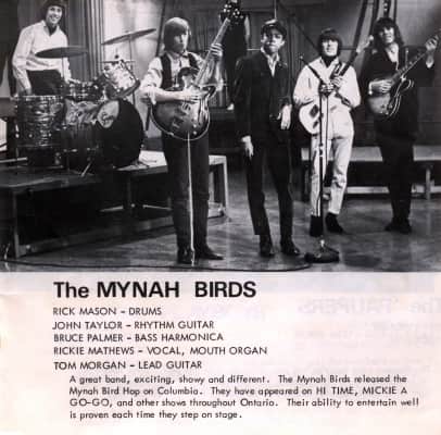 The Mynah Birds was a Canadian R&B band formed in Toronto, Ontario, that was active from 1964 to 1967. Although the band never released an album, it is notable as featuring a number of musicians, such as Rick James and Neil Young, who went on to have successful careers in rock, folk rock and funk.