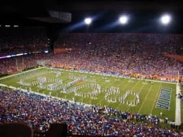 The University of Florida Fightin' Gator Marching Band, also known as The Pride of the Sunshine, is the official marching band for the University of Florida. The current era of the band is also referred to as The Sound of the Gator Nation.
