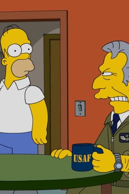 The clan hear about Grampa's days in the Air Force. Plus, Milhouse's cousin swings by. Game of Thrones' Carice van Houten guest stars.