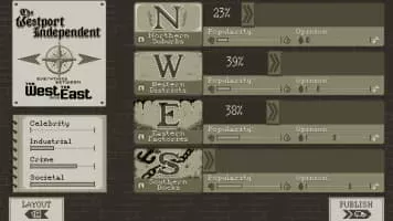 The Westport Independent is a simulation video game developed by Double Zero One Zero and published by Coffee Stain Studios. The game was released digitally for Android, iOS, Linux, Microsoft Windows, and OS X on 21 January 2016.