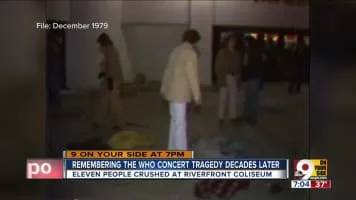 The Who concert disaster occurred on December 3, 1979, when British rock band the Who performed at Riverfront Coliseum in Cincinnati, Ohio, United States, and a crush of concert-goers outside the coliseum's entry doors resulted in the deaths of 11 people.