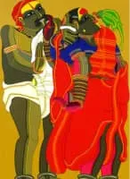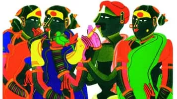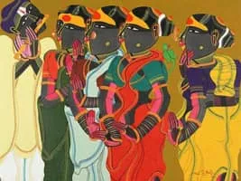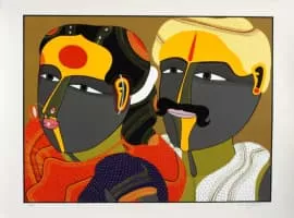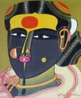 Thota Vaikuntam is an Indian painter. His paintings capture simple lifestyle of villagers like the paddy fields, toddy pots on shoulders of men, the household chores, temple rituals etc. His drawings range from stark charcoal on paper, transparent washes and pencil drawings.