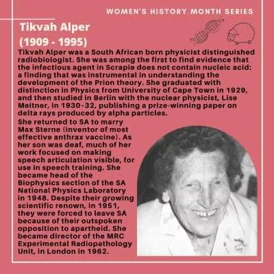 Tikvah Alper trained as a physicist and became a distinguished radiobiologist. Among many other initiatives and discoveries, she was among the first to find evidence indicating that the infectious agent ...