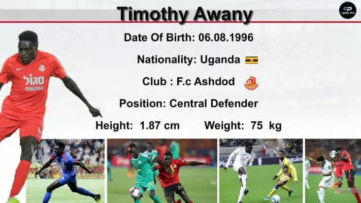 Timothy Dennis Awany is a Ugandan professional footballer who plays for F.C. Ashdod and the Uganda national team as a defender.