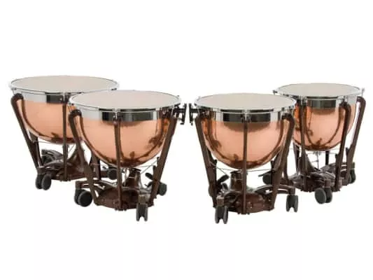 Timpani or kettledrums are musical instruments in the percussion family. A type of drum categorised as a hemispherical drum, they consist of a membrane called a head stretched over a large bowl traditionally made of copper.