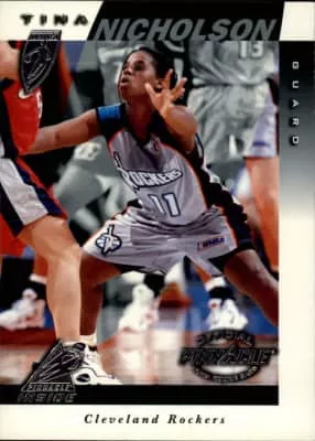 Kristina J. Nicholson is a retired American professional basketball player. She was known for her quickness and athleticism and being relatively short. She played one season in the WNBA for the Cleveland Rockers in the 1997 WNBA season. At age 38, she was inducted into the Chester County Sports Hall of Fame.