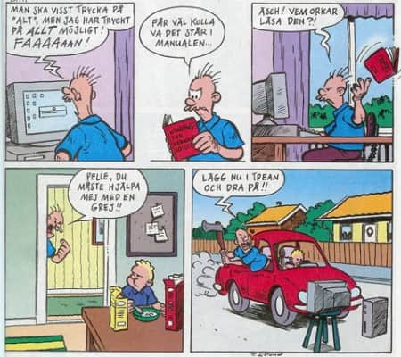 Tobias Sjölund is a Swedish comic artist. He began his career working on the popular serial '91:an Karlsson' in 91:an magazine in 2001. He then created his own series in 2002. 'Livet Hemmavid' was a modern take on the traditional Swedish family-oriented comics. It was published in 91:an and later in Uti vår hage.