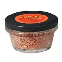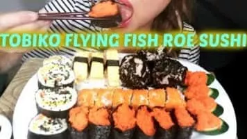 Tobiko is the Japanese word for flying fish roe. It is most widely known for its use in creating certain types of sushi. The eggs are small, ranging from 0. 5 to 0. 8 mm. For comparison, tobiko is larger than masago, but smaller than ikura.