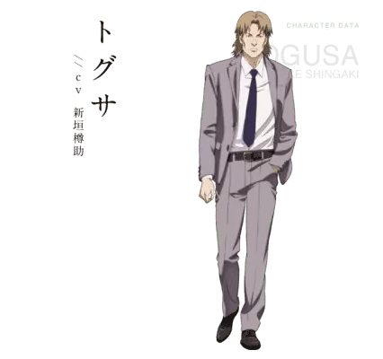 Togusa is the second most prominently featured male character in Masamune Shirow's Ghost in the Shell manga and anime series. In Stand Alone Complex, as well as the original Ghost in the Shell film, it is stated that he is the youngest member of Section 9 and the only family man.
