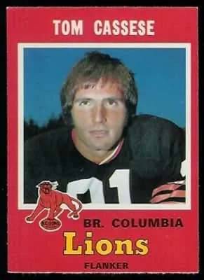 Tom Cassese is a former American football defensive back and halfback. He played for the Denver Broncos in 1967 and for the Montreal Alouettes in 1969.