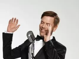 Tom Gaebel is a German singer and leader of a big band named after himself. He changed the spelling of his last name, omitting the umlaut. In addition to singing and arranging, Gaebel writes lyrics in English.