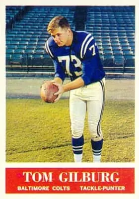 Thomas deMagnin Gilburg is a former American football player and coach. He was a punter and second-string offensive tackle for the Baltimore Colts of the National Football League from 1961 to 1965. He was selected in the second round by the Colts from Syracuse University in the 1961 NFL Draft.