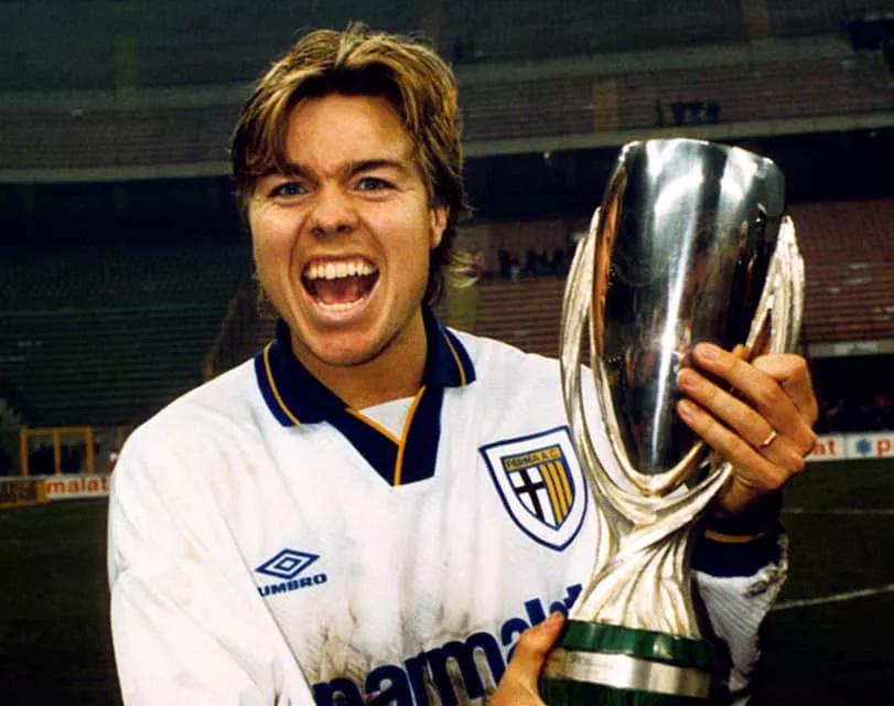 Per Tomas Brolin is a Swedish former professional footballer who played as a forward or as a midfielder. At club level, he had a successful period with A.C. Parma during the early 1990s, winning the 1992 Coppa Italia, the 1993 Cup Winners' Cup, the 1993 UEFA Super Cup, and the 1995 UEFA Cup.