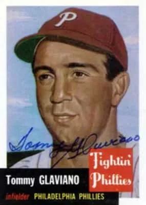 Thomas Giatano Glaviano was an American professional baseball third baseman, who played in Major League Baseball for the St. Louis Cardinals and Philadelphia Phillies. He appeared in 389 big league games, between 1949 and 1953. Glaviano threw and batted right-handed, standing 5 feet 9 inches tall, weighing 175 pounds.