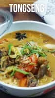 Tongseng is a Southeast Asian goat meat, mutton or beef stew dish in curry-like soup with vegetables and kecap manis. Tongseng is commonly found in Indonesian region of Central Java; from Surakarta to Yogyakarta. However, it is believed that dish was originated from Klego district in Boyolali, Central Java.