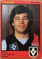 Anthony Francis "Tony" Buhagiar is a retired Australian rules footballer who played in the Victorian Football League. A pint-sized rover, he made his senior debut for West Australian National Football League club East Fremantle in the earlier 1970s as a free-spirited 16-year-old.