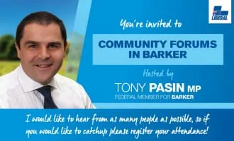 Antony "Tony" Pasin is an Australian politician. He is a member of the Liberal Party of Australia for the House of Representatives seat of Barker since the 2013 election.