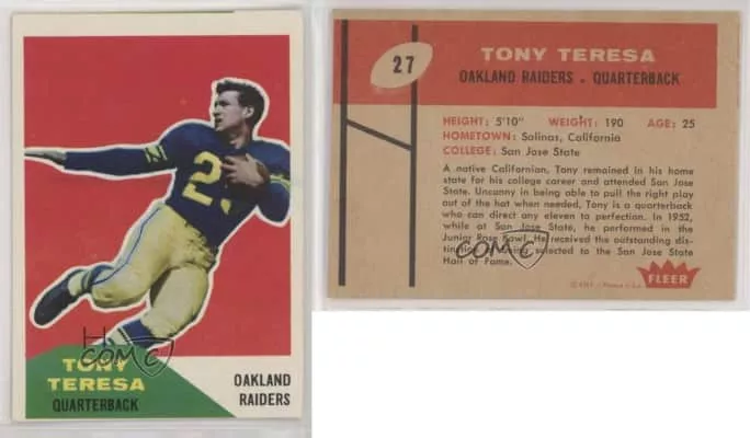 Anthony Michael Teresa was an American gridiron football halfback. He played college football for San Jose State, then played professionally in the Canadian Football League, National Football League, and American Football League.