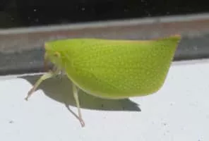 Siphanta acuta is a plant-feeding insect in the family Flatidae; this species of planthopper is found in various parts of the world, and is sometimes called the green planthopper or the torpedo bug. About 15 mm long, they resemble small leaves and are generally found in trees.