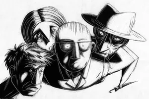 Tragic Story with Happy Ending is a 2005 animated short by Regina Pessoa. To make the 7 minute 43 second film, Pessoa's drawings were transferred to glossy paper, brushed with India ink, scratched with a blade to give the effect of an engraving, then photographed.