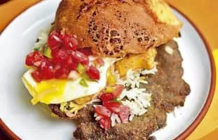 Trancapecho is a sandwich served in Cochabamba, Bolivia. It comes from a dish called "silpancho", which differs from the traditional silpancho. All ingredients, including the rice, join to a bread tortilla, also the typical preparation in this city.