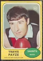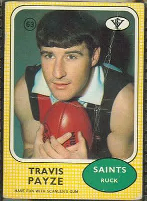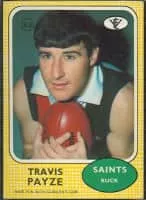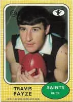 Travis Irving Payze was an Australian rules footballer in the Victorian Football League. Debuting for St Kilda against Collingwood in the 1966 second semi-final, Payze came off the bench and booted 3 goals. He was also named on the bench two weeks later in the Saints' first premiership side.
