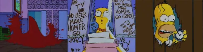 Homer turns the toaster into a time vortex and becomes homicidal when his cable and beer are cut off.