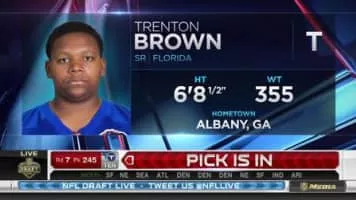 Trenton Jacoby "Trent" Brown is an American football offensive tackle for the Oakland Raiders of the National Football League. He played college football for Georgia Military College and the University of Florida, and was drafted by the San Francisco 49ers in the seventh round of the 2015 NFL Draft.