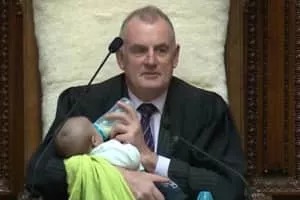 New Zealand speaker cradles MP's baby during parliament debate
