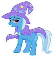 Trixie Lulamoon (simply known as Trixie) is a former-antagonist-turned-supporting-protagonist in My Little Pony: Friendship is Magic. She is one of Starlight Glimmer's best friends and traveling magician. She tends to speak in the third person, referring to herself as "The Great and Powerful Trixie".