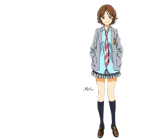 Tsubaki Sawabe (澤部 椿, Sawabe Tsubaki?) is one of the main characters of the Shigatsu wa Kimi no Uso series. She is a third-year at Sumiya Junior High School. Tsubaki has straight chin-length brown hair that curls up at the ends where it is parted down the middle and glowing hazel eyes.