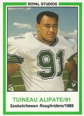 Tuineau A. Alipate was a gridiron football linebacker who played in the National Football League and Canadian Football League. After playing college football at Washington State University, Alipate played for the Saskatchewan Roughriders and Hamilton Tiger-Cats of the CFL from 1989 to 1992.