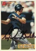 Tyler Lee Van Burkleo is a former bench coach for the Seattle Mariners, hitting coach for the Cleveland Indians, and a former first baseman in Major League Baseball. He played for two different major league teams in his career: the California Angels and Colorado Rockies.
