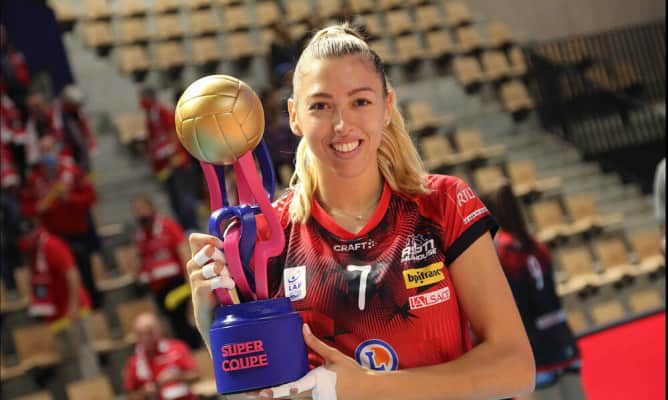 Tzina Lamprousi is a female professional volleyball player from Greece, who is a member of the Greece women's national volleyball team. At club level, she plays in Hellenic Volley League for Greek powerhouse Olympiacos Piraeus since July 2013.
