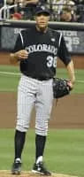 Ubaldo Jiménez García is a Dominican-American former professional baseball pitcher. He played in Major League Baseball for the Colorado Rockies, Cleveland Indians and Baltimore Orioles. Jiménez was an MLB All-Star in 2010. That year, he pitched the first no-hitter in Rockies' franchise history.