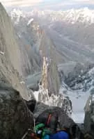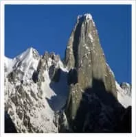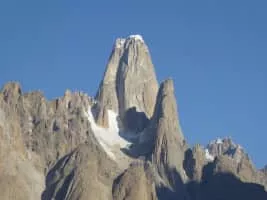 Uli Biaho is a mountain near Trango Towers and Baltoro Glacier in the Gilgit–Baltistan area of Pakistan. It consists of two main peaks, Uli Biaho Tower; and Uli Biaho Peak, which as of 2006 was unclimbed. Uli Biaho Tower was climbed alpine-style via the direct East Face by John Roskelley et al.