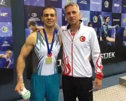Ümit Şamiloğlu is a male Turkish artistic gymnast and part of the national team. He competes in the horizontal bar event and has won numerous gold medals in international competition. He is said to be the "oldest gymnast" at competitions in which he takes part.