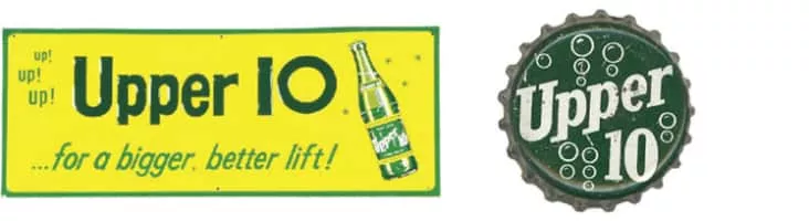 Upper 10 is a caffeine free drink lemon-lime soft drink, similar to Sprite, Sierra Mist, and Bubble Up. It was bottled by RC Cola. The Upper 10 brand debuted in 1933 as a product of the Nehi Corporation. Upper 10 was one of RC Cola's flagship brands throughout the company's history.