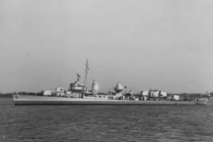 USS Radford (DD-446), named for Rear Admiral William Radford, was a Fletcher-class destroyer in the United States Navy. Entering service in 1942 during World War II the ship also saw action during the Korean War and the Vietnam War. The ship was removed from service in 1969 and sold for scrap in 1970.