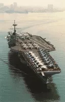 The seventh USS Ranger was the third of four Forrestal-class supercarriers built for the United States Navy in the 1950s. Although all four ships of the class were completed with angled decks, Ranger had the distinction of being the first US carrier built from the beginning as an angled-deck ship.