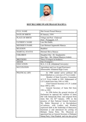 | Parents | Swami Prasad Maurya |