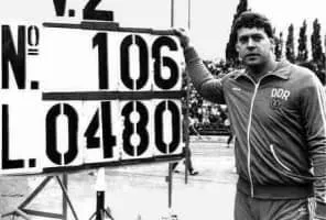 Uwe Hohn is a retired German track and field athlete who competed in the javelin throw. He is the only athlete to throw a javelin 100 metres or more, with his world record of 104. 80 m. A new javelin design was implemented in 1986 and the records had to be restarted, thus Hohn's mark became an "eternal world record".