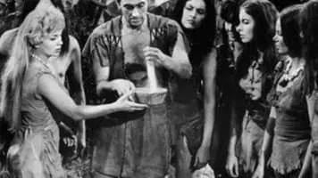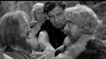 Two men try to return to Earth after being swept into a world of cave and river people.