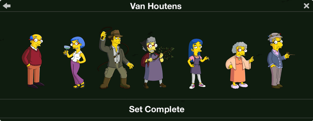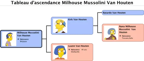 The Van Houten family are one of the many families who are native to Springfield. They are related to the Simpson family, because Milford married Eliza. They are of Dutch-Italian descent. The Van Houten family portrait in the season 25 episode The War of Art.